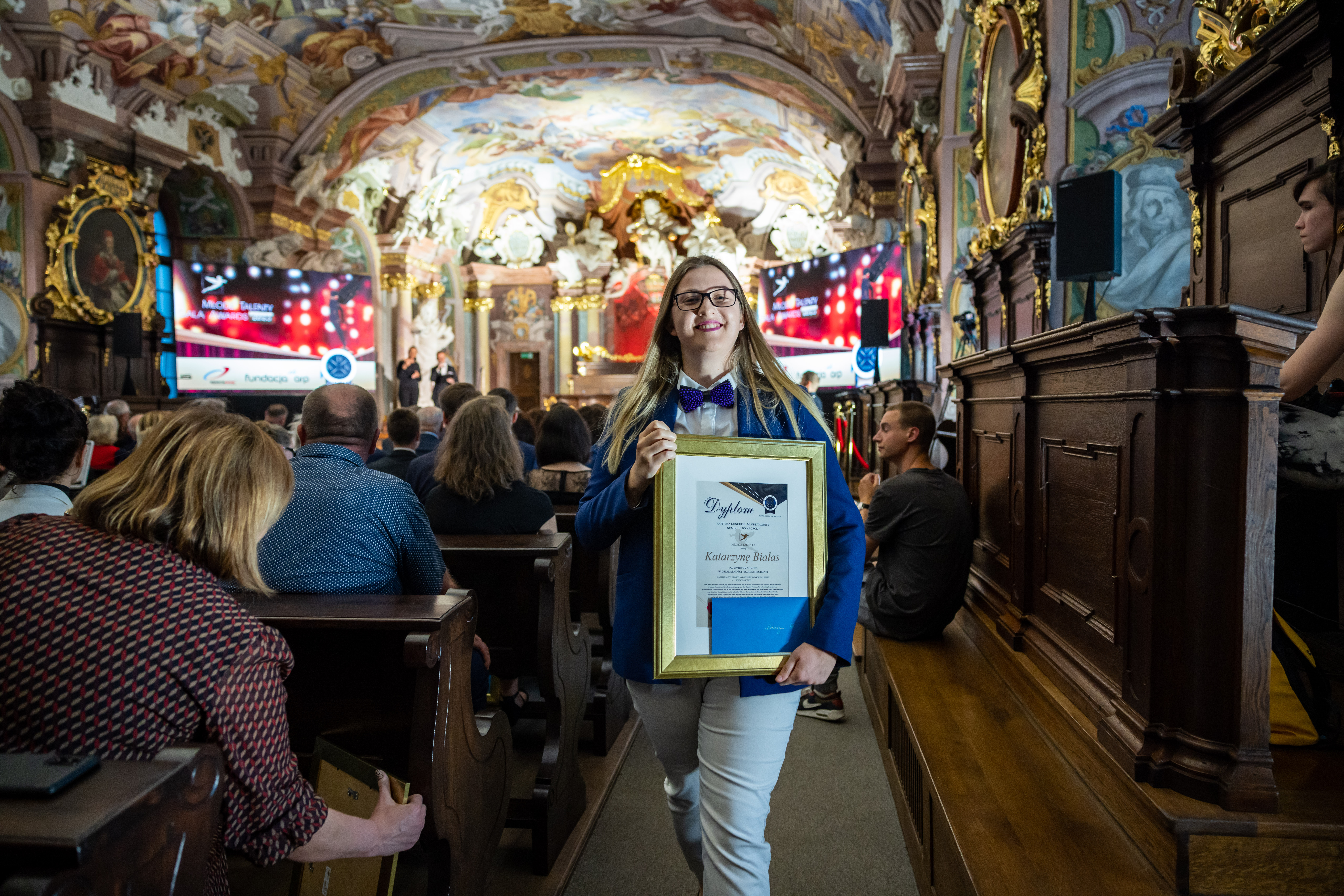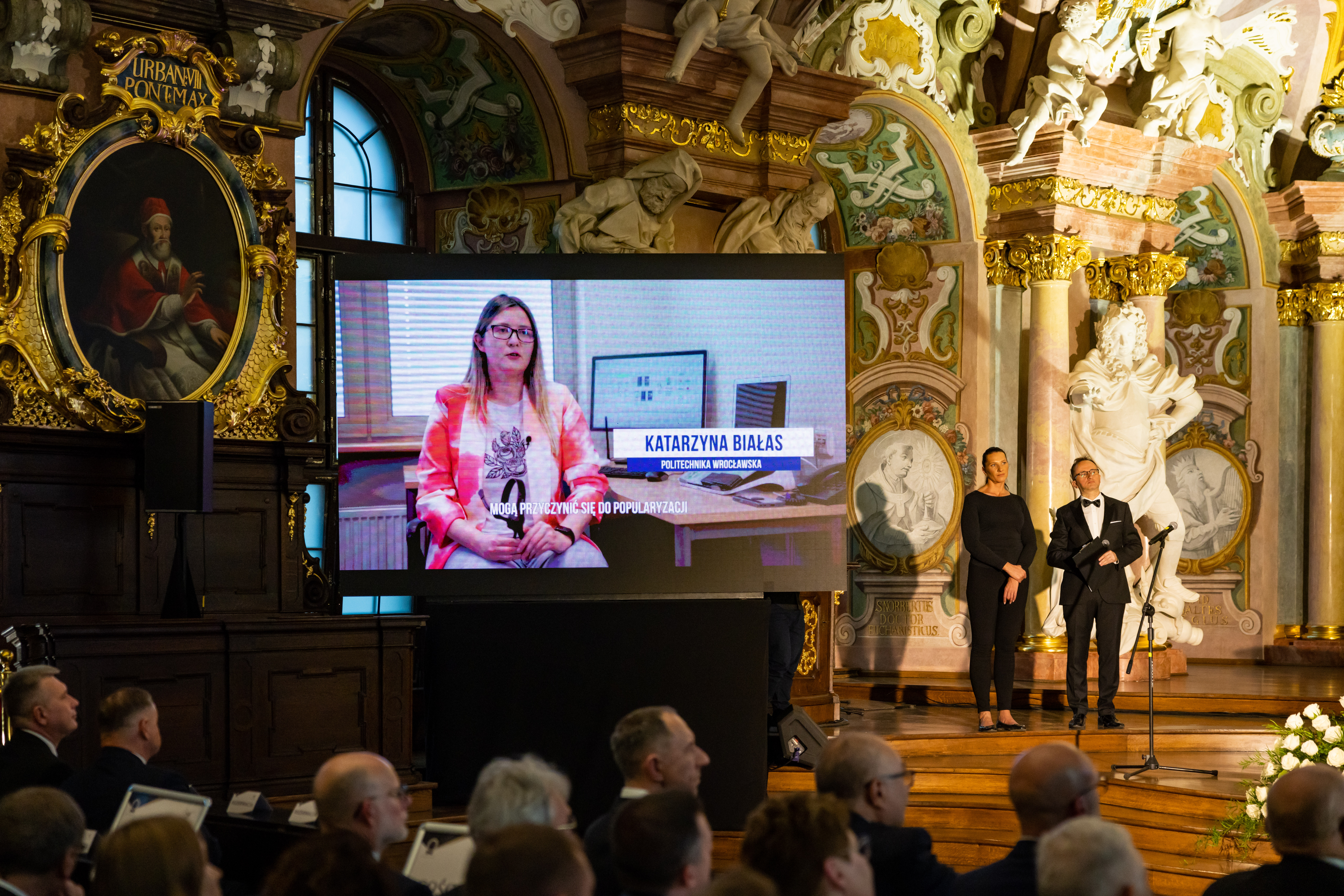Wszystko odbyło się w przepięknym miejscu – Auli Leopoldina Uniwersystetu Wrocławskiego, poniżej fragment prezentacji o mnie i wspaniałe zdjęcia dzięki Michałowi Zmonarskiemu