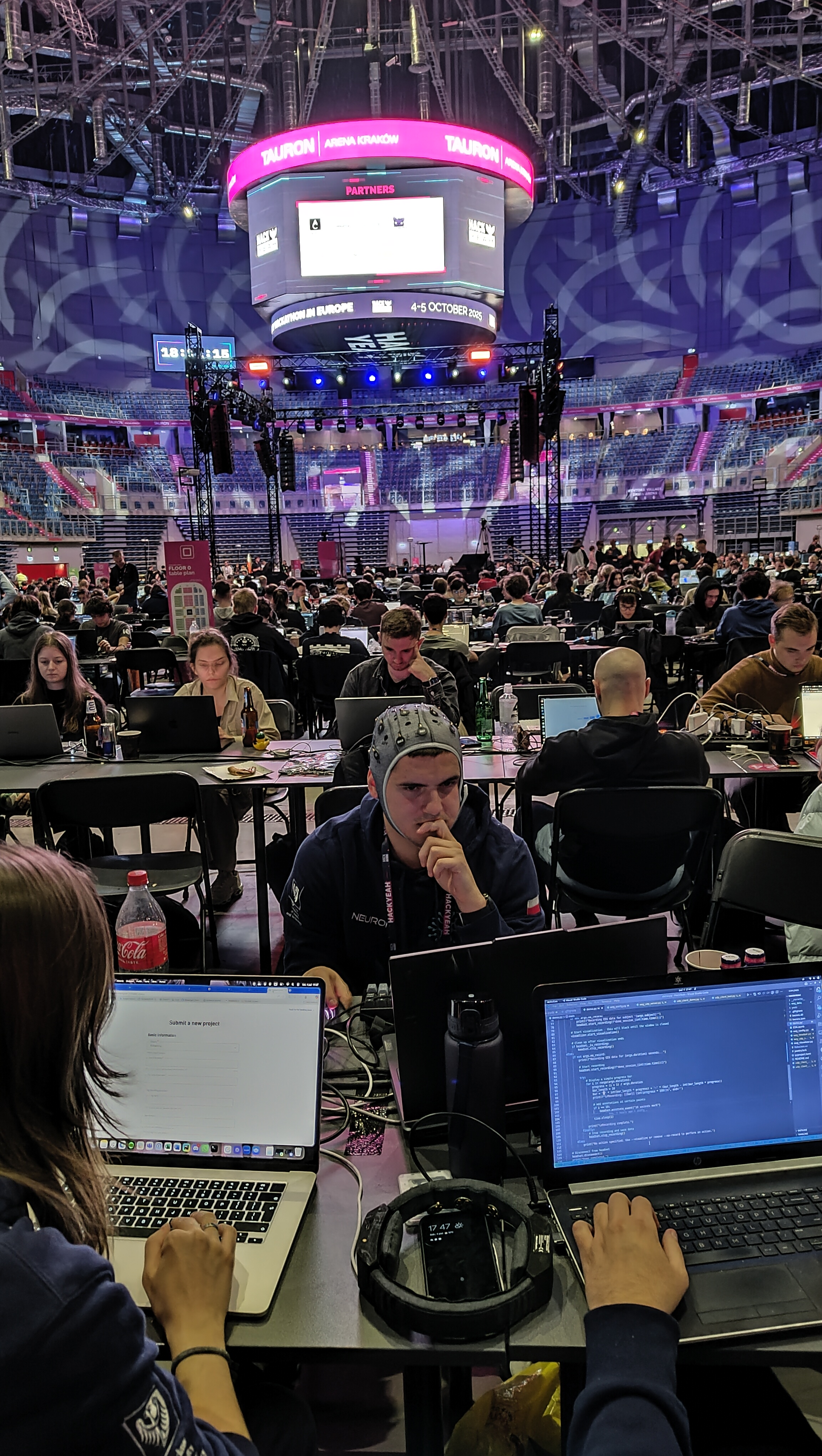 W dniach 4-5 października w Krakowie miał miejsce konkurs HackYeah. Uczestniczyli w nim również studenci z KN Neuron. Konkurencja była wielka, ponieważ liczba uczestników konkursu przekraczała 2 tysiące, wszyscy przez 24 godziny rywalizowali w intensywnym hackathonie. 💡 Reprezentanci naszego koła w ciągu jednej doby stworzyli gotowy do wdrożenia framework do analizy EEG. Projekt umożliwia generowanie zbalansowanego feedbacku w czasie rzeczywistym, a jego częścią była również makieta aplikacji mobilnej, planowanej do dalszego rozwoju w ramach działalności Koła. 🧠📱